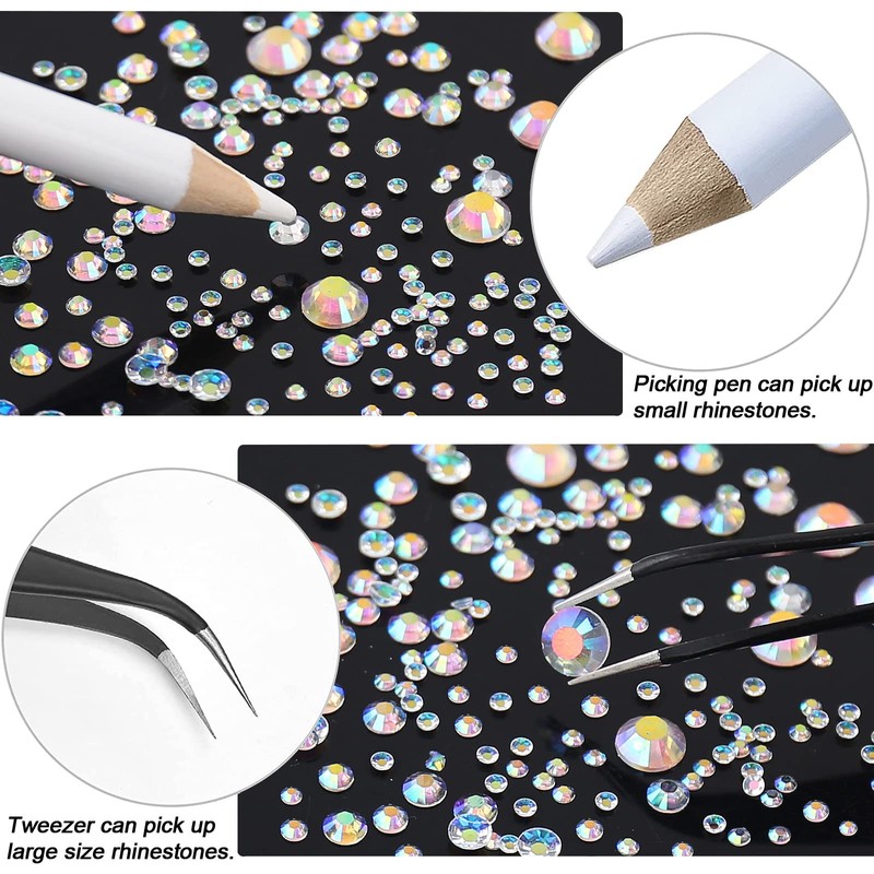 AUREHEN 10000PCs 2-6MM Clear AB Resin Flat Back Rhinestones, Round Non Hotfix Resin Rhinestones Nail Gems Stones with Tweezer & Picker Pen for Tumblers Nail Art & DIY Decoration