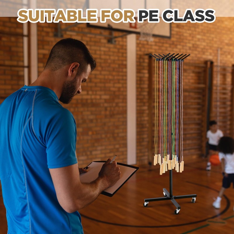- Voluminous Storage Capacity: the jump rope cart with wheels, measuring about 65 x 23.6 x 19.7 inches, provides an abundant space for storing more than 200 jump ropes, is proper for fitness centers and more where large scale jump rope storage is necessary