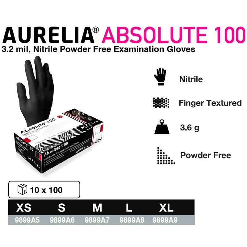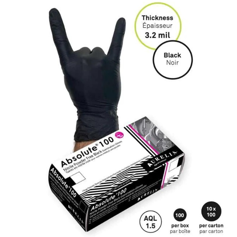 Aurelia - Absolute 100-100 Nitrile Single Use Gloves Black Powder Free - Hypoallergenic - Textured Fingertips - Ambidextrous (100, X-Large)