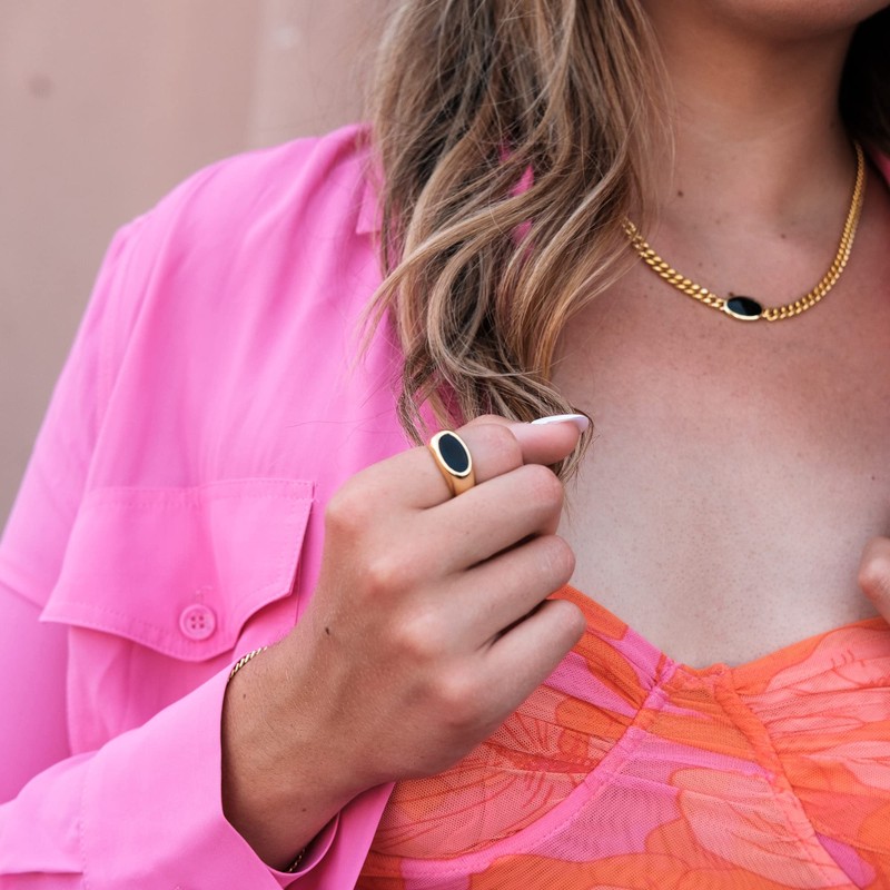 Aurelia Mae 18K Gold Plated Womens Gold Signet Ring Starburst Gold Signet Rings Star Minimalist Signet Ring Mother of Pearl Statement Signet Ring, Gold-plated Brass, Cubic Zirconia