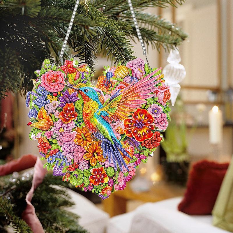 Auremi Hummingbird Hanging Diamond Painting Kits for Adults, 5D Diamond Painting Hanging Sign Animal Kits Flower Crystal Art Window Ornaments Easy Diy Crystal Pendant Gem Art for Garden Wall Decor