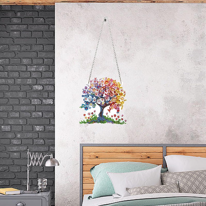 Auremi Tree of Life Diamond Painting Hanging, DIY Diamond Art Hanging Pendant Kits for Adults Special Shape Window Ornaments Diamond Dots Hanging Sign for Garden Wall Decor