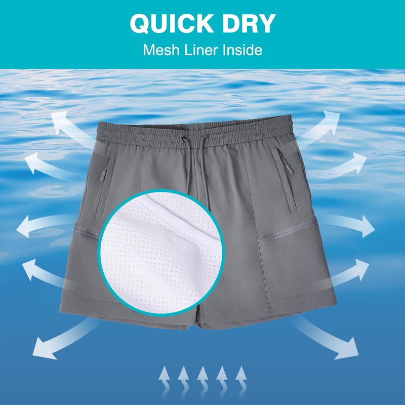 • The quick dry shorts for men are equipped with elastic belts and adjustable ropes to provide more adjustability.