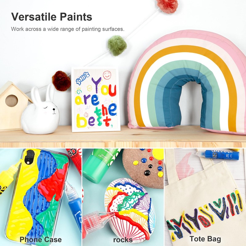 This fabric paint set is perfect for a wide range of applications. From customizing t-shirts and jeans to adding a personal touch to home decor, the possibilities are endless. It's also great for painting parties, holiday crafts, and gifting to your craft-loving friends.