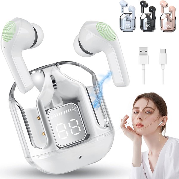 Auriculares Bluetooth inalámbricos, mini auriculares Bluetooth, auriculares intrauditivos, IPX4 resistente al agua y a las salpicaduras, con estuche de carga y LED digital, iOS y Android (Blanco)