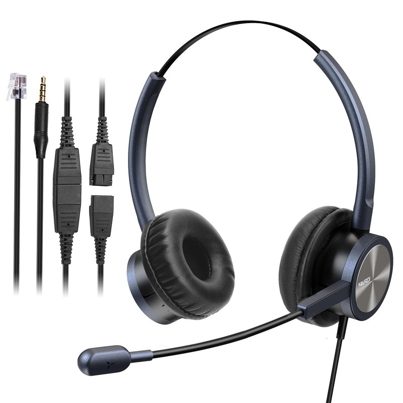 - Comodidad durante todo el día: es auriculares de teléfono vienen con almohadillas de piel sintética suave de gran taño un uso súper cómodo. Diademas ajustables diferentes taños de cabeza y micrófono giratorio de 330 grados que te permiten encontrar el ajuste perfecto.
