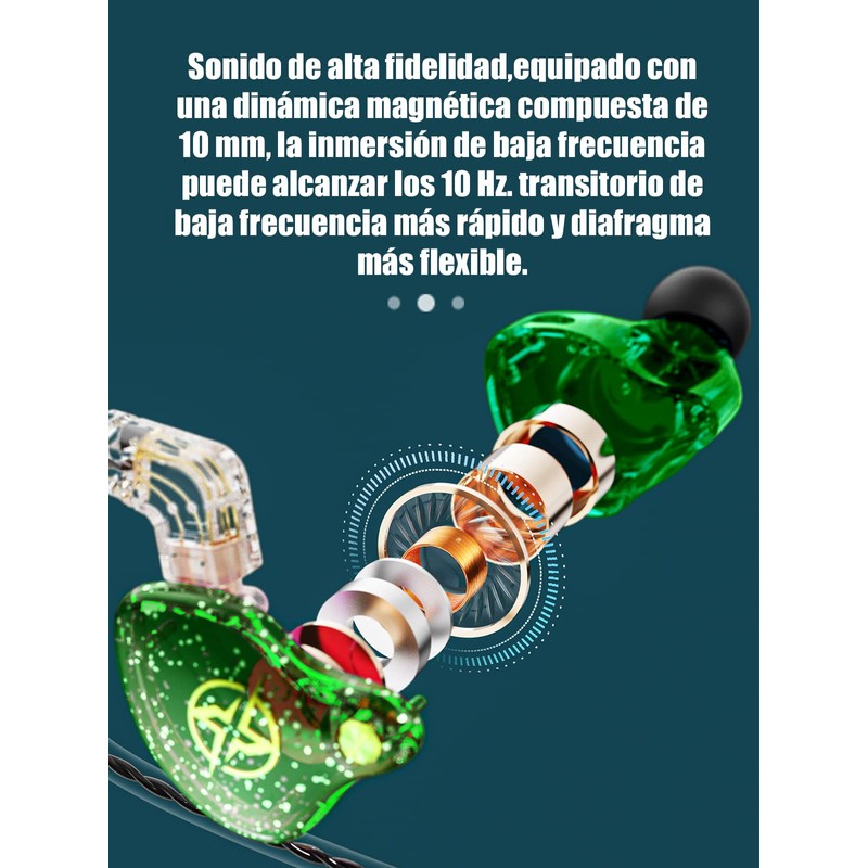 Auriculares intraurales con cable, Colorful Hybrid monitores intraurales, auriculares HiFi de graves profundos con cables desmontables con pin B, auriculares aislantes de ruido (micrófono) (Verde)