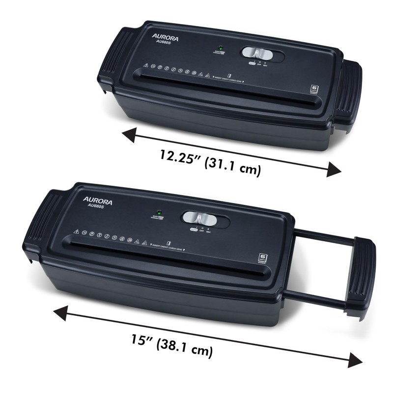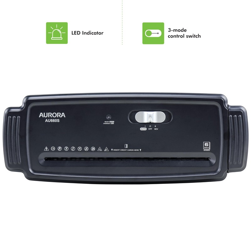Aurora AU660S 6-Sheet Strip Cut Paper/Credit Card Shredder Without Wastebasket, Portable with Extendable Arm, Black