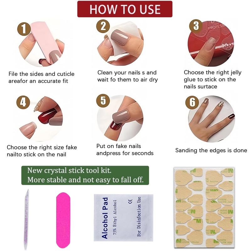 1.Long Square press on nails are easy to use, it only takes a few minutes to complete a manicure.