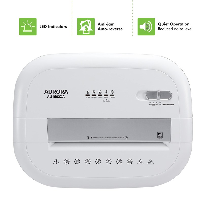 Aurora Heavy Duty Anti-Jam 15-Sheet Crosscut Shredder/60 Min Run Time/ 6-Gallon Pullout Basket, White