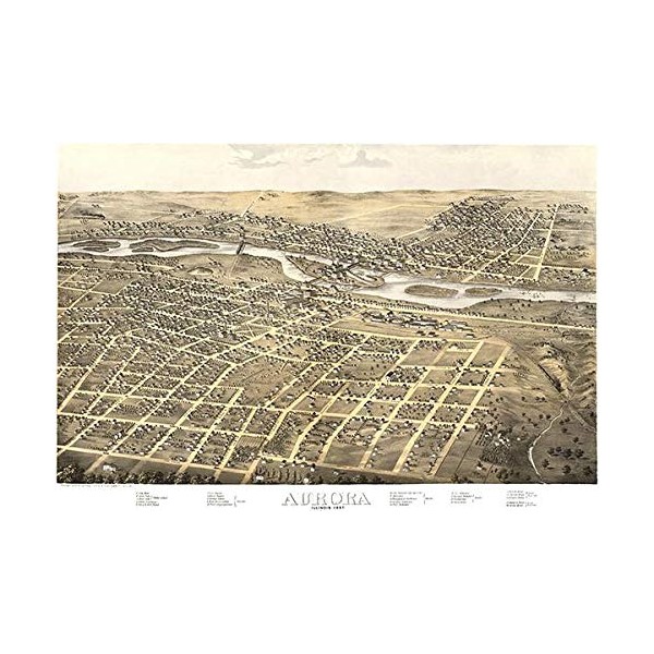 Aurora, Illinois - 1867 - Aerial Birds Eye View Map Poster