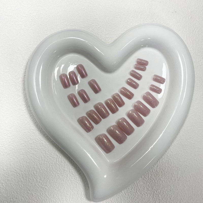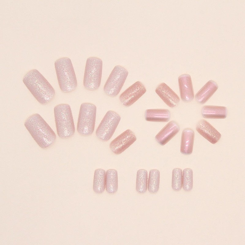 Aurora Pink Press on Nails Medium Square Fake Nails Glitter Glue on Nails Pink False Nails with Design Glitter Stick on Nails Full Cover Glossy Artificial Acrylic Nails for Women Girls Manicure 24pcs…