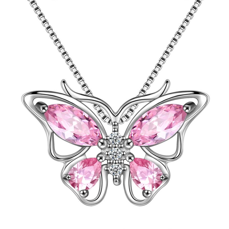 Aurora Tears Butterfly Necklace Earrings Rings Birthstone Jewellery Set Pendant Dating Pendant Gifts for Women and Girls 925 Sterling Silver, Necklace, J.pink tourmaline