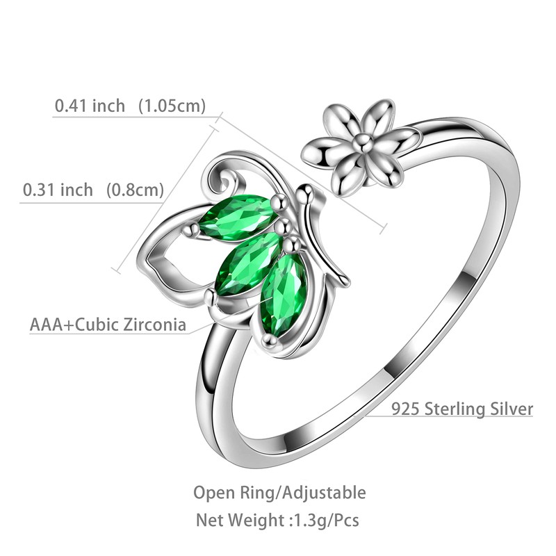 Aurora Tears Butterfly Necklace Earrings Rings Birthstone Jewellery Set Pendant Dating Pendant Gifts for Women and Girls 925 Sterling Silver, Rings, E.green-emerald