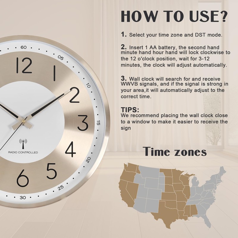 - AUTOMATICALLY SETS: Atomic wall clock automatically adjusts to the correct time when it receives WWVB airwaves from Colorado. Radio controlled clock receives daily WWVB updates