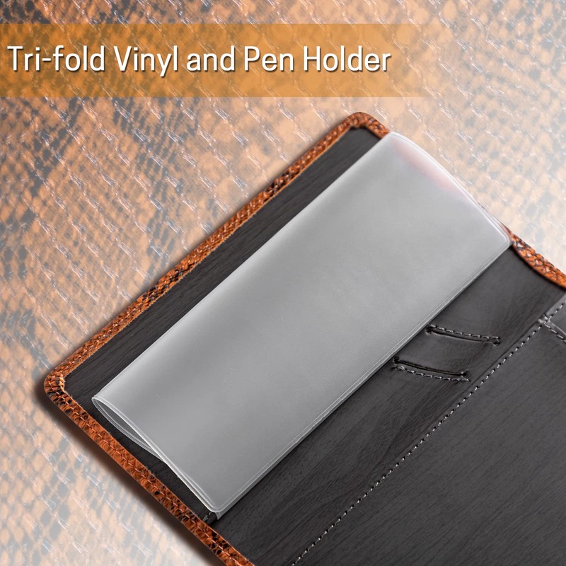 - 📦︎Versatile Pockets Design: There are 3 pockets and a pen holder on the interior of the cover. The pockets support accommodating standard sized top-tear or side-tear checks.