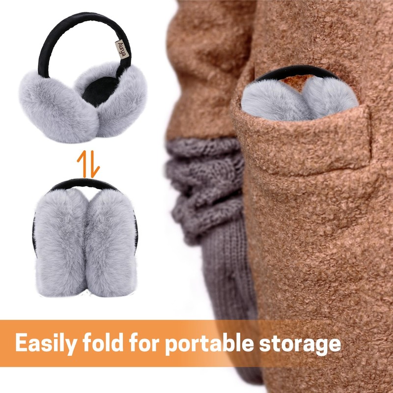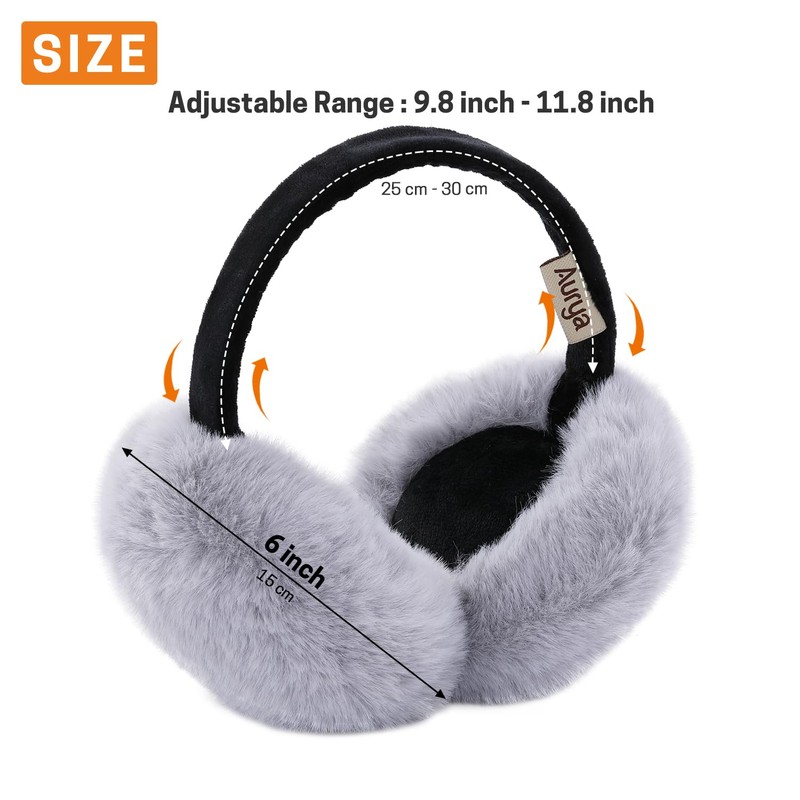 Aurya Ear Muffs, Foldable Fluffy Ear Warmer Winter Outdoor, Band Adjustable Earmuffs for Women
