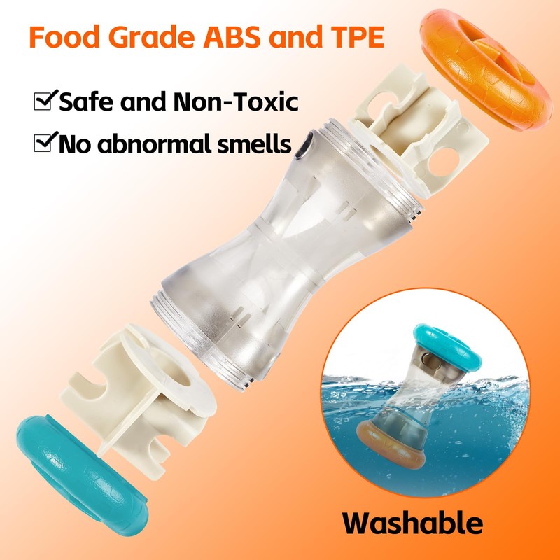 - 【Safe material】This dog slow feeder is made of two safe and non-toxic materials: food grade ABS and TPE. The container in the middle is made of ABS so you can clearly see the food inside. The covers on both sides are made of soft TPE and won't make any sound no matter how much your dog plays.