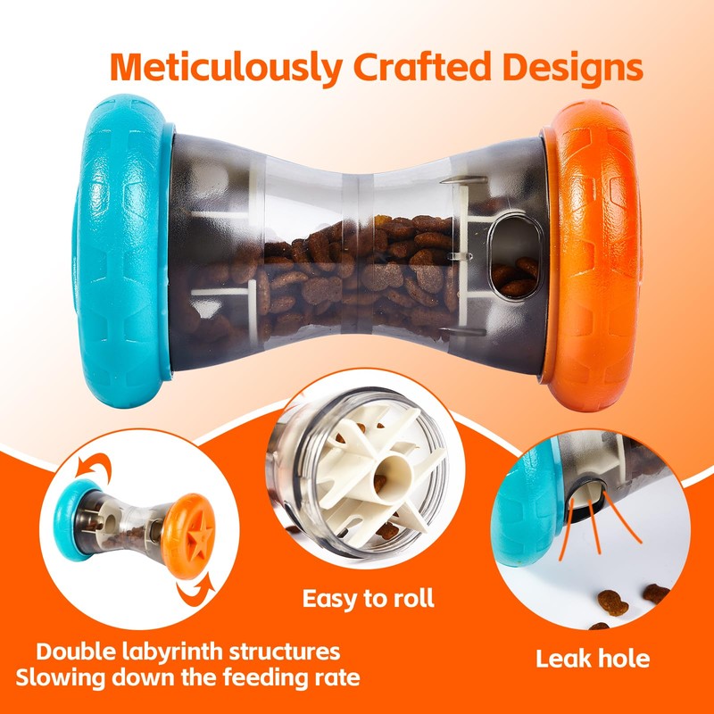 - 【Improve Intelligence】When the dog pushes the enrichment toy, it rolls and then gradually releases the treat. This captures your dog's attention and allows them to be rewarded for their entertainment, thus improving their intelligence.