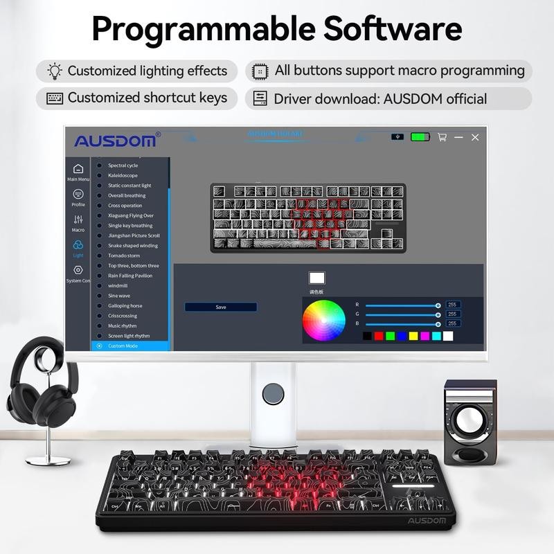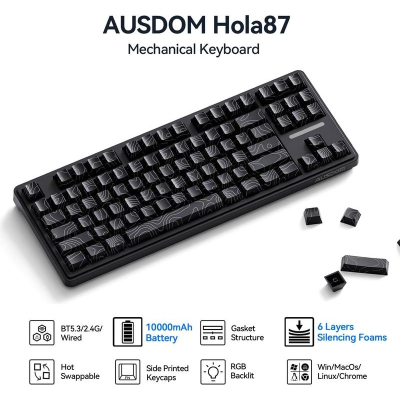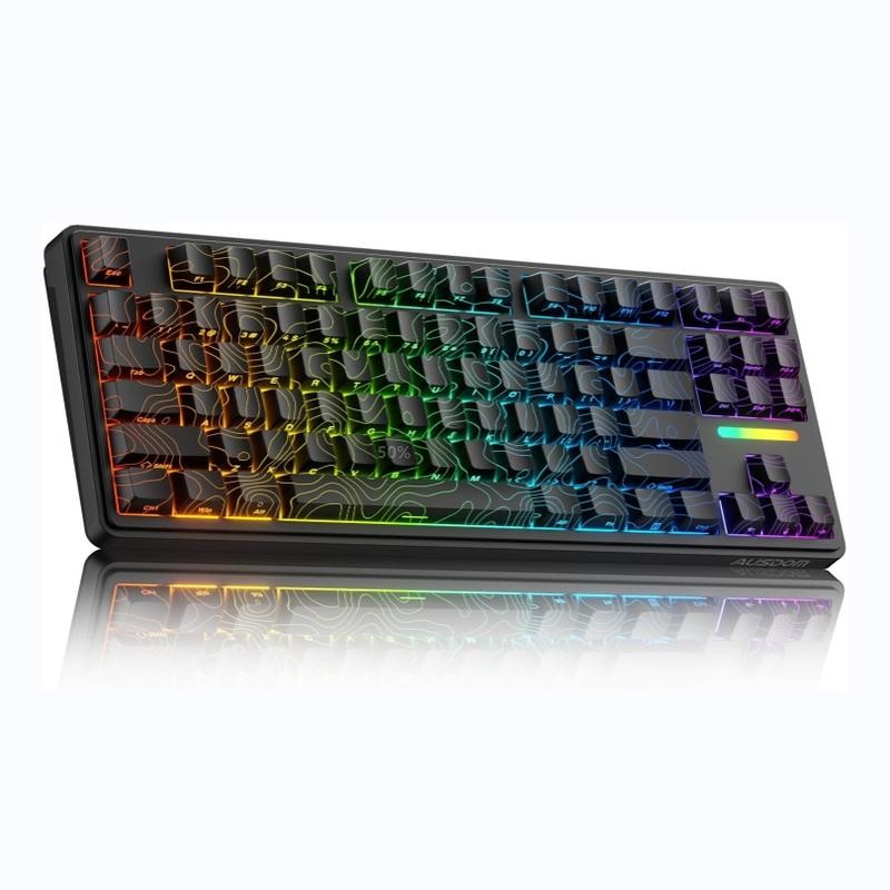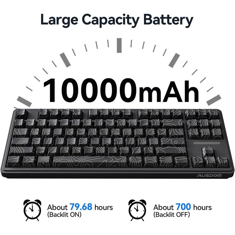AUSDOM H87 Wireless Mechanical Gaming Keyboard: 10000mAh Battery Tri-Mode 2.4G/BT5.3/USB-C Hot Swappable Custom Keyboard with RGB Backlit, Side Printed PBT Keycaps, 15-Layer Gasket Structure, Topographic,Gaming keyboard, office keyboard - Color: Topograp