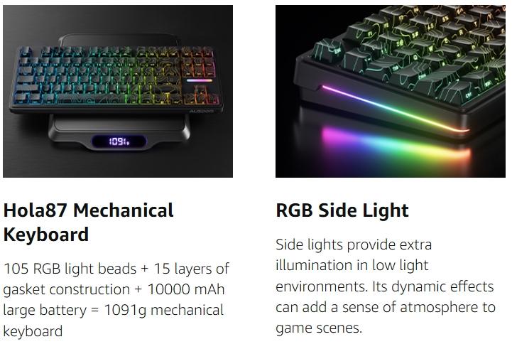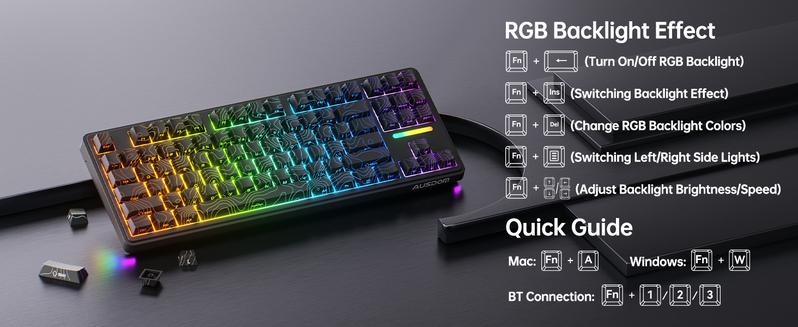 AUSDOM H87 Wireless Mechanical Gaming Keyboard: 10000mAh Battery Tri-Mode 2.4...