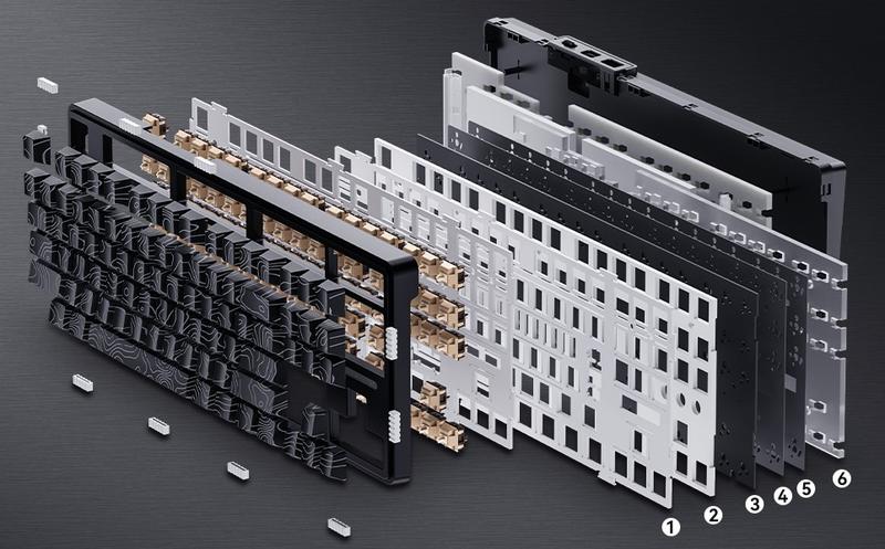 6-layer filling muffler and shock-absorbing internal design providing a better typing experience.