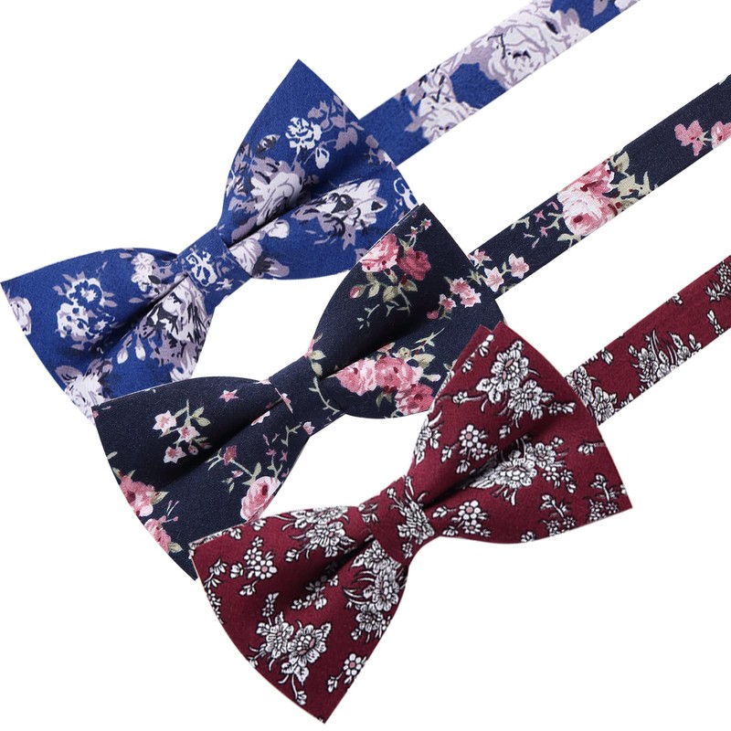- This Set comes with 6 packs floral pre-tied bow ties in assorted different colors and patterns,it included wine Red floral bowtie,light blue flower bow tie, Black bow tie,Blue bow tie,Navy blue bowtie,royal blue bowties etc, there's a colored bow tie here for any occasion and every sense of style,such as match for suit shirt,vest, suspenders etc