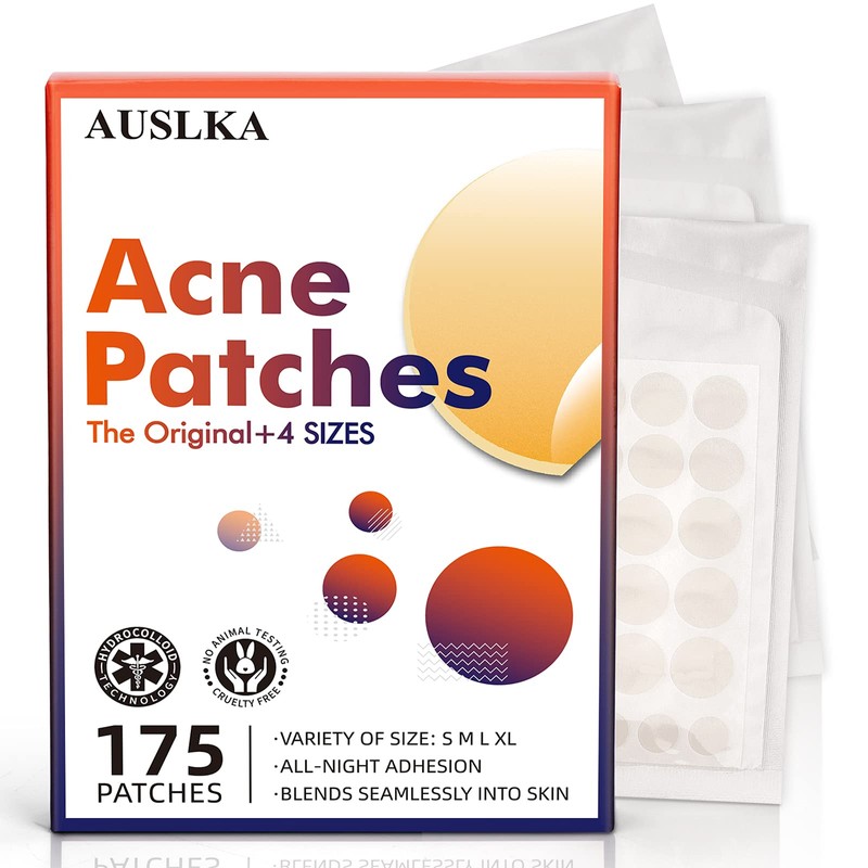 AUSLKA Acne Pimple Patches (175 Patches), Hydrocolloid Acne Pimple Patch for Face Zit Breakouts, Blemish Dots for Face Zit Patch Dots- 4 Size