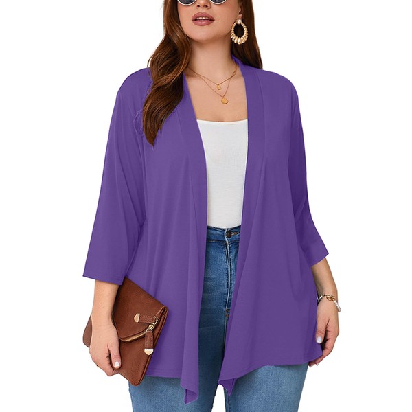 AusLook Women's Plus Size Cardigan Lilac Purple 4X Lightweight Shrugs Double Ruffled 3/4 Sleeve Casual Open Front Summer Beach Coverup Loose Outwear Jacket Coat