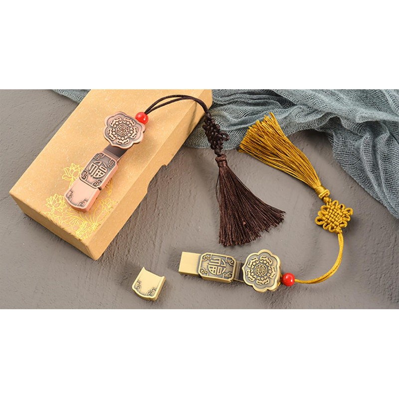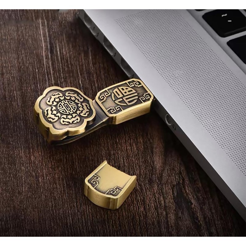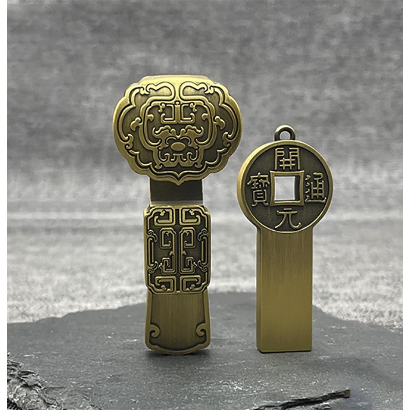 Auspicious - Unidad flash USB de metal con estilo chino bronce retro en forma de moneda USB 3.0 unidad de almacenamiento de música (bronce Ruyi 64 GB)