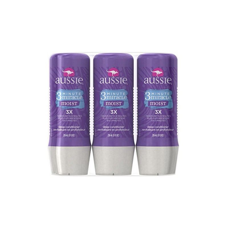 Aussie 3 Minute Miracle Moist Deep Conditioning Treatment, Detangler, 8 Fluid Ounces (Pack of 3) - Deep Conditioner