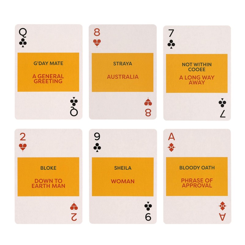 - STANDARD PLAY DECK - Each deck of cards has 54 of the most useful phrases to know in Australia, complete with phonetic pronunciations, and features a conventional deck of 52 playing cards and two jokers. These flash cards provide an introduction to common Aussie lingo and are ideal for language learners just starting out.