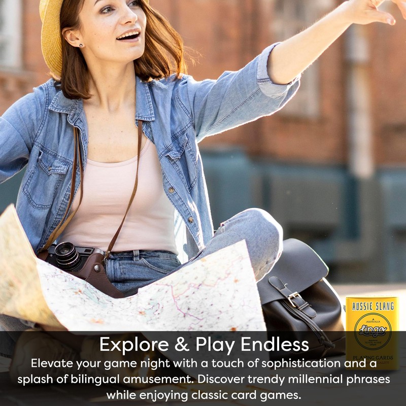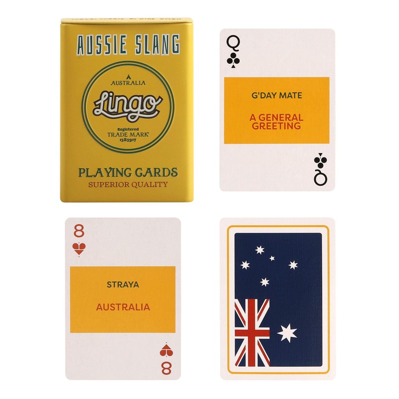 - EXPLORE AND PLAY ENDLESS –Add a touch of class and a dash of bilingual fun to your next game night. You can now learn Australian slang and play your favorite card games like Poker, Black Jack, Spoons, Rummy, Go Fish, Memory, Crazy Eights, Hearts and Solitaire. Trust us, with these cards in your hand, you'll be the one everyone's talking about. Order your Lingo Playing Cards today and get ready for the most fun and exciting game night yet!