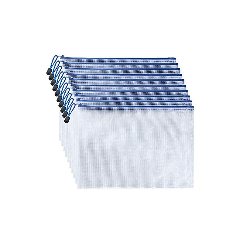AUSTARK 10Pcs Zipper File Bags Plastic Zipper Pouch Waterproof Document Pouch Zipper Folders Receipts Organizer Board Games Organizer for Office School Home Travel (A3 Size 16.9 x 12 Inches, White)