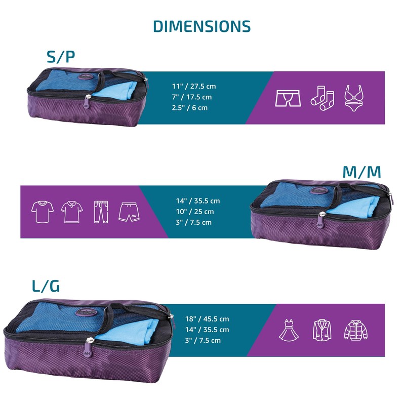 - Easy To Use: These three packing cubes each feature a convenient zippered closure and carry handle, plus a mesh top for visibility and ventilation. Can be stored flat when not in use.