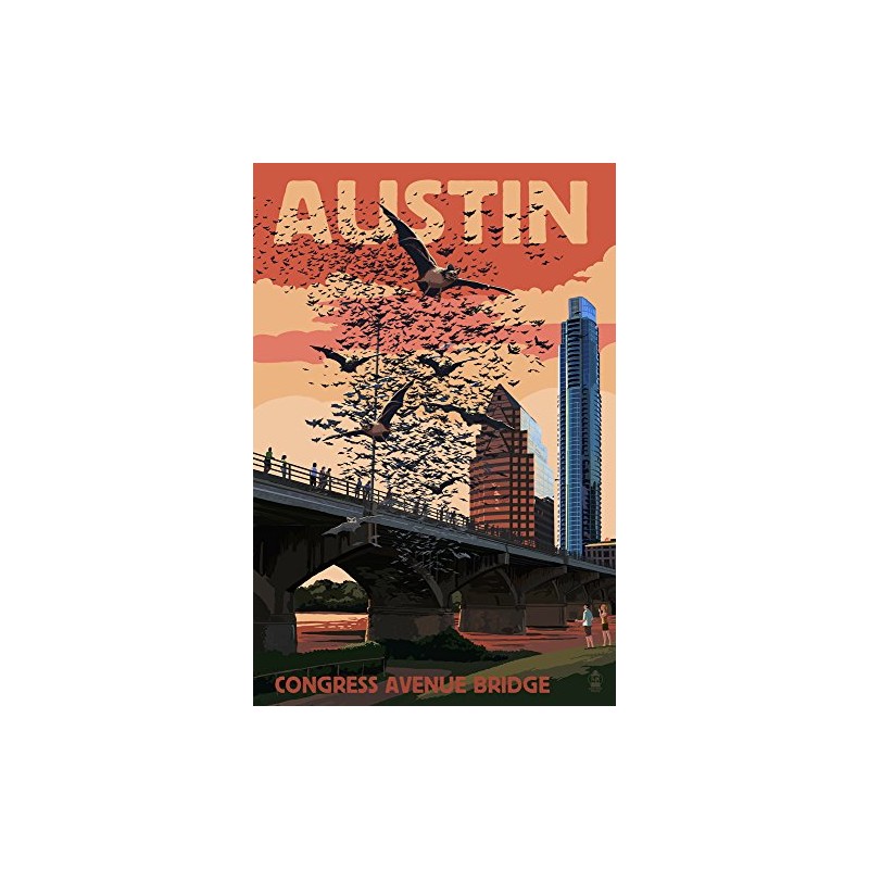Austin, Texas - Bats and Congress Avenue Bridge (16x24 Giclee Gallery Print, Wall Decor Travel Poster)