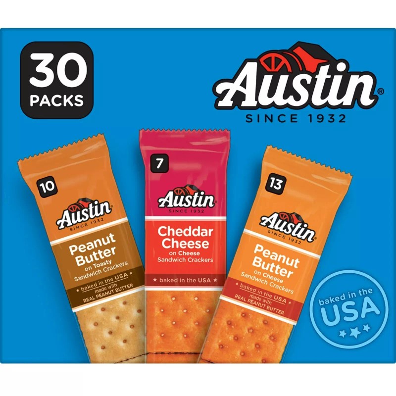 Austin Variety Pack Sandwich Crackers, Single Serve Snack Crackers, 30 Count..