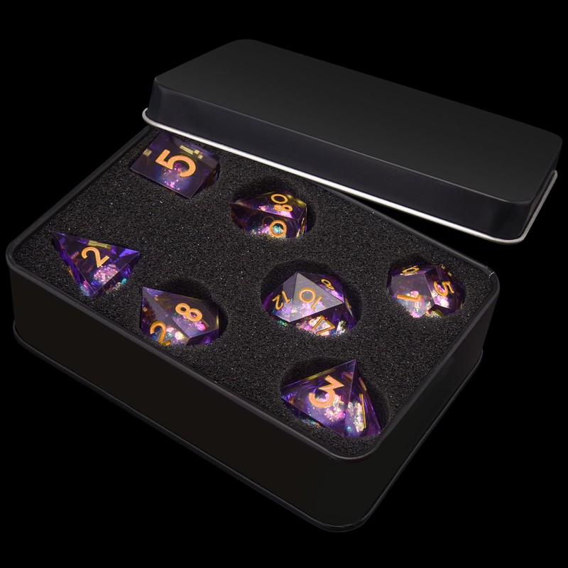 • Great Game Dice - The sharp edge liquid core resin dnd dice set are perfect for Dungeons and Dragons, MTG, Shadowrun, Pathfinder, Yahtzee, math games, and other table games etc.