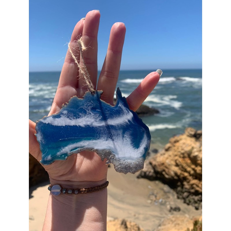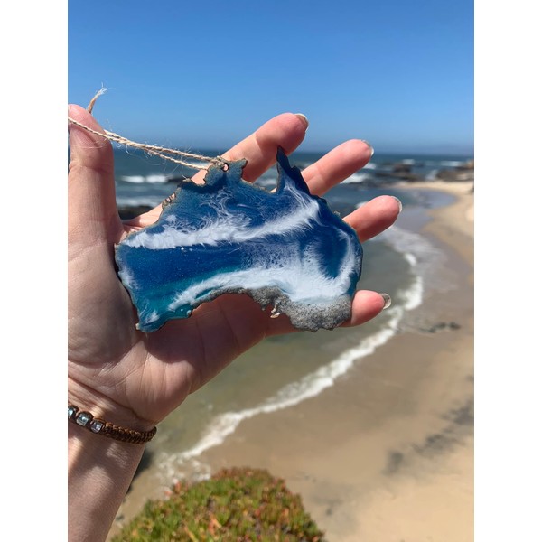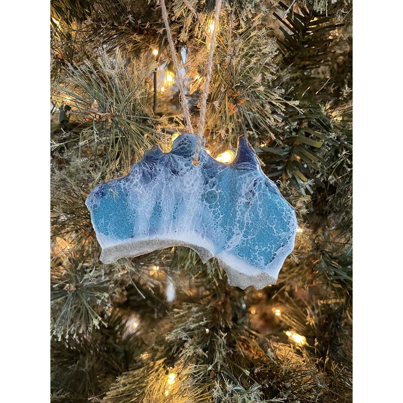 Australia Holiday Ornament, Handmade Resin Art is One of A Kind, Island Christmas Ornament With Real Sand And Ocean Waves