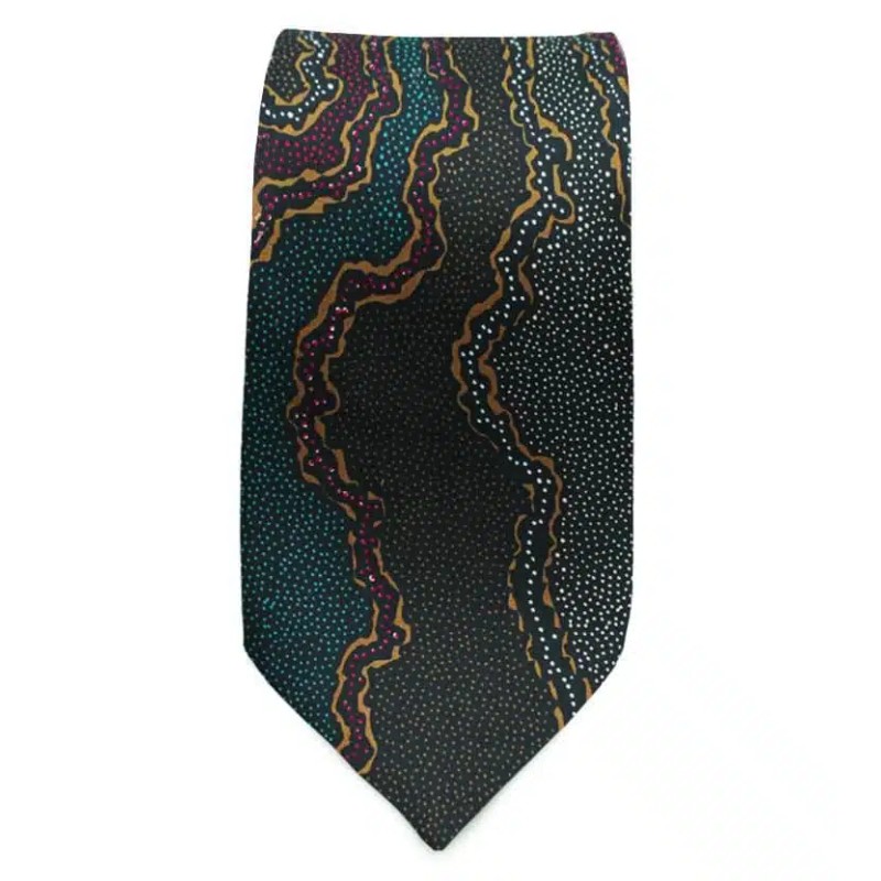 Add a splash of colour and sophistication to any outfit with our gorgeous Aboriginal ties. Made right here in Australia and featuring authentic Aboriginal art, these Yijan ties are a stunning Australian gifts that are lightweight and easy to send anywhere in the world. Each sale generates a royalty that is paid directly to the artist which helps support Aboriginal artists and communities across Australia. So whether you’re looking for a new tie to add to your own wardrobe or a gift for friends or family, these beautiful ties are a must have!