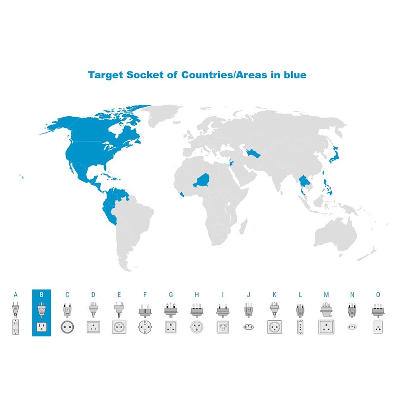 8) Destination socket: 3-pin socket United States, Canada, Mexico, etc.