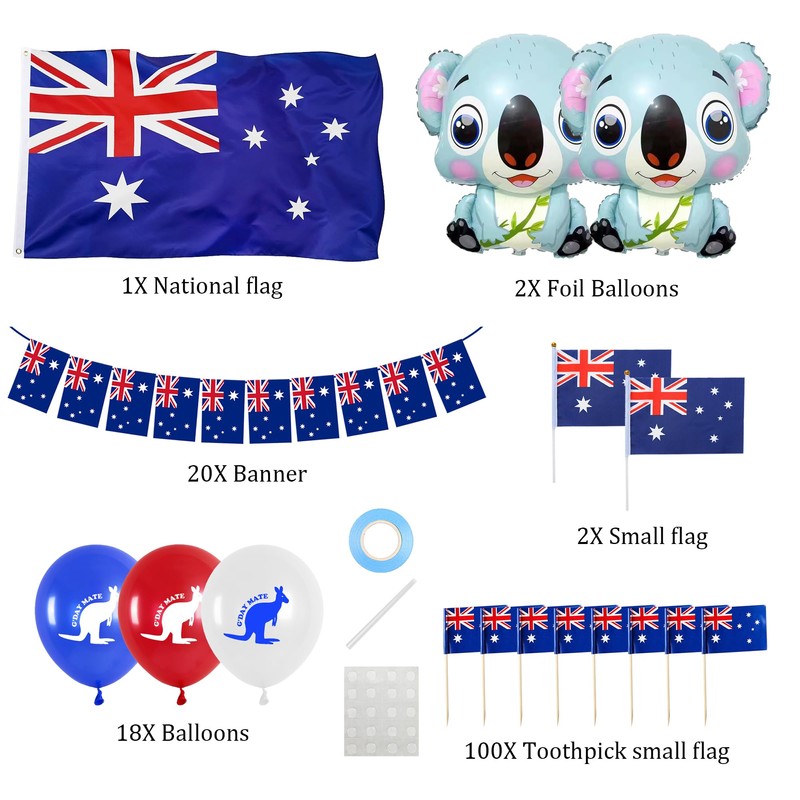 - Australian Party Decorations: You will receive 1 national flag, 2 hand-waved flags, 20 colorful flags, 100 cupcake decorations, 18 latex balloons, and 2 cute animal foil balloons to meet various celebration needs
