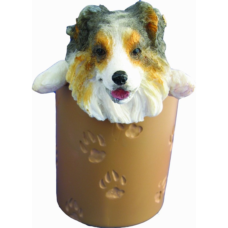 Australian Shepherd Pencil Cup Holder with Realistic Hand Painted Australian Shepherd Face and Paws Hanging Over Cup, Uniquely Designed Australian Shepherd Gifts, A Convenient Organizer for Home or Office, One Of A Kind Pen Holder