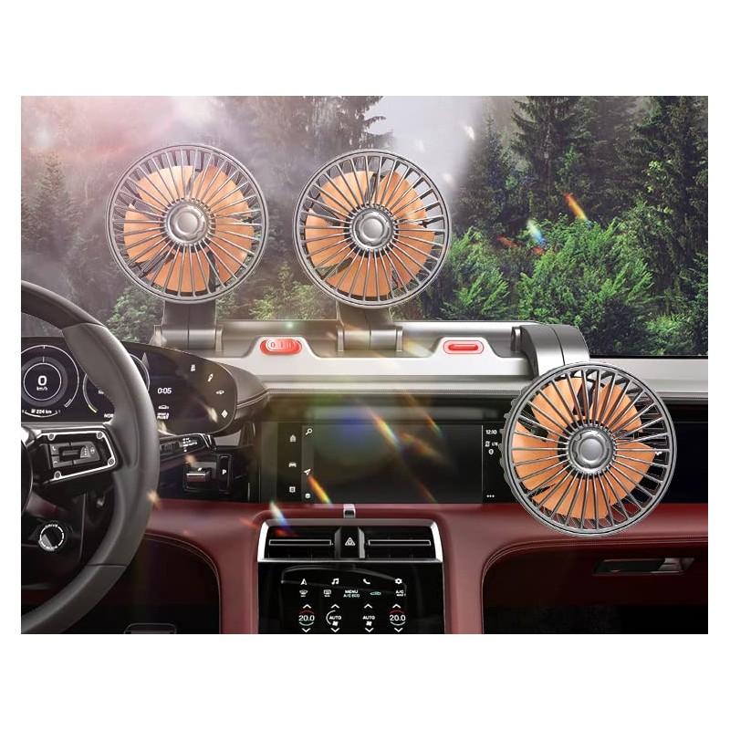 - 3 Fans, Free Angle Adjustment: Equipped with 3 fans, this fan can provide 5 seats of air. The seat shaft rotates 360 degrees, and the fan head can be adjusted up and down 180 degrees. Circulating air supply greatly improves the cooling efficiency of the air conditioner in your car, and the air circulation in your car will keep you cool and comfortable