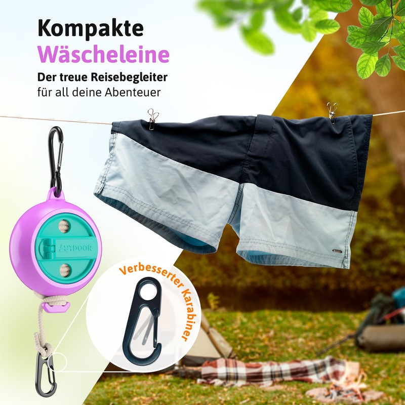 - Sustainable camping accessories and travel gadget – Our extendable washing line comes in environmentally friendly packaging made of cardboard and without plastic. So you can be sure that you have not only your drying laundry, but also the environment in view.