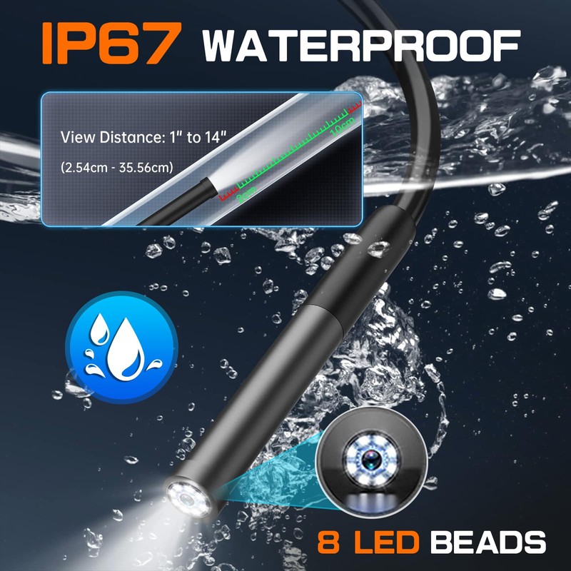 - 🔥【Waterproof Endoscope Camera with Lights】The Autel MV108S take small imager head design (0.33'') with 8 bright LED beads to ensore good performance in various working scenarios no matter in dark or in day-time. The camera itself has certain level of waterproof features, along with the semi-rigid cable, you can easily approach the camera to hard-to-reached area to get HD close-up image or videos such as water pipeline, wiring area, small components in the cars and so on.