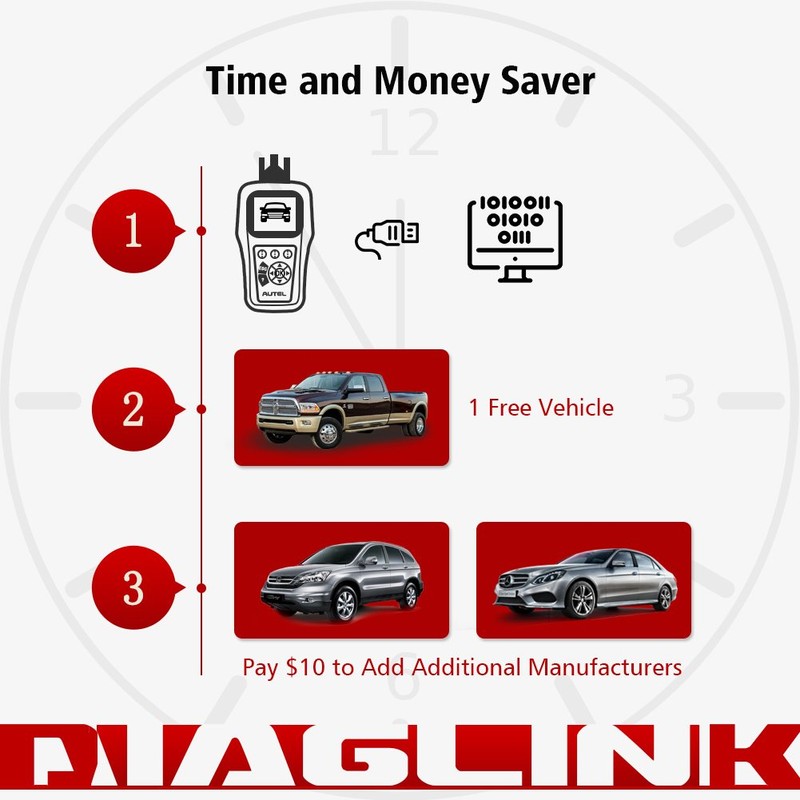 - Breakthrough diagnostic tool : The Autel diaglink OBDII EOBD scanner is customized version of MD802 full systems. You need to select and download vehicle software by yourself before using. You can free get one vehicle make software as your choice at the first time and purchase other vehicle software by paying Usd10 for each vehicle