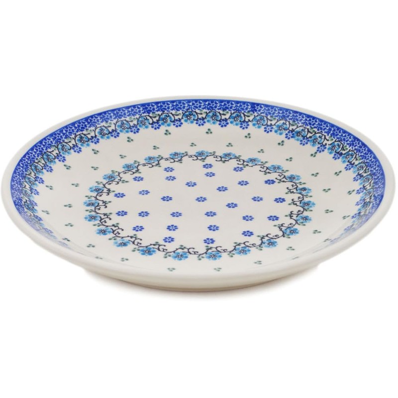Authentic Polish Pottery Dinner Plate in Blue Delicate Flower Design Handmade in Bolesławiec Poland by Ceramika Artystyczna + Certificate of Authenticity
