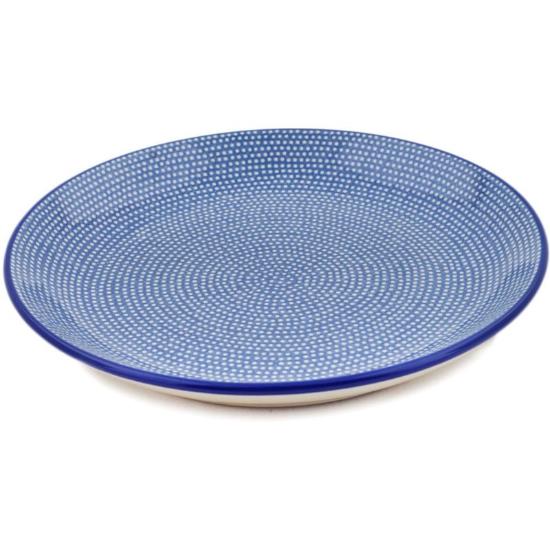 Authentic Polish Pottery Dinner Plate Signature UNIKAT in Slate Blue Dots Design Handmade in Bolesławiec Poland by Ceramika Artystyczna + Certificate of Authenticity