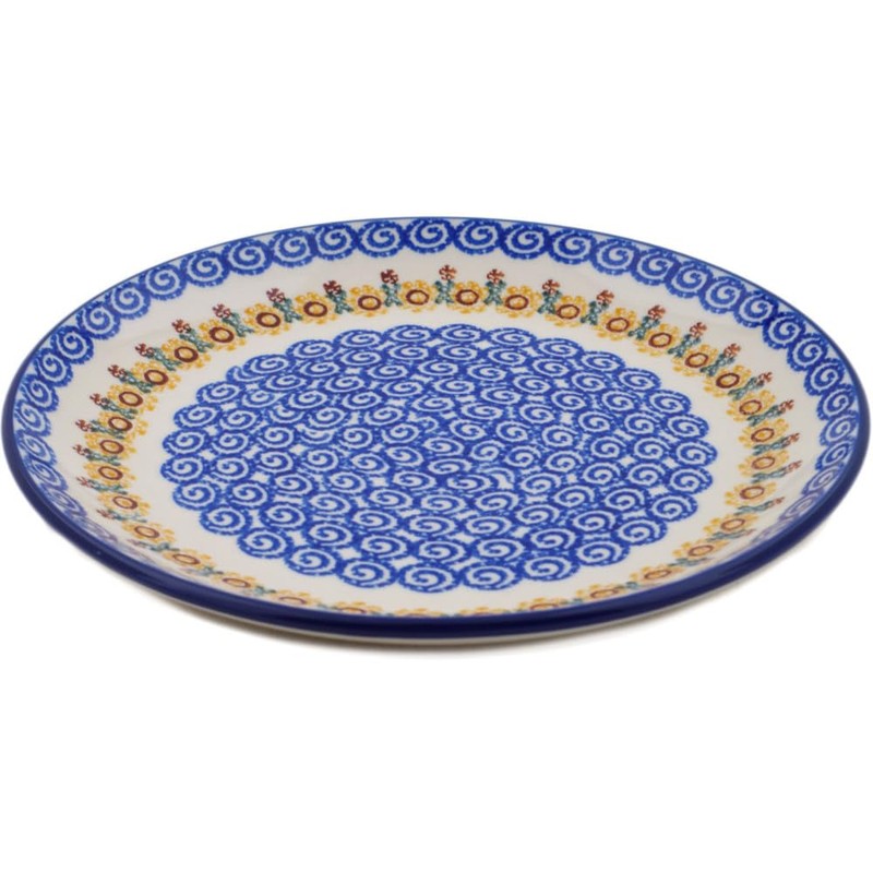 Authentic Polish Pottery Lunch Plate in Rustic Sunflower Chain Design Handmade in Bolesławiec Poland by Ceramika Artystyczna + Certificate of Authenticity